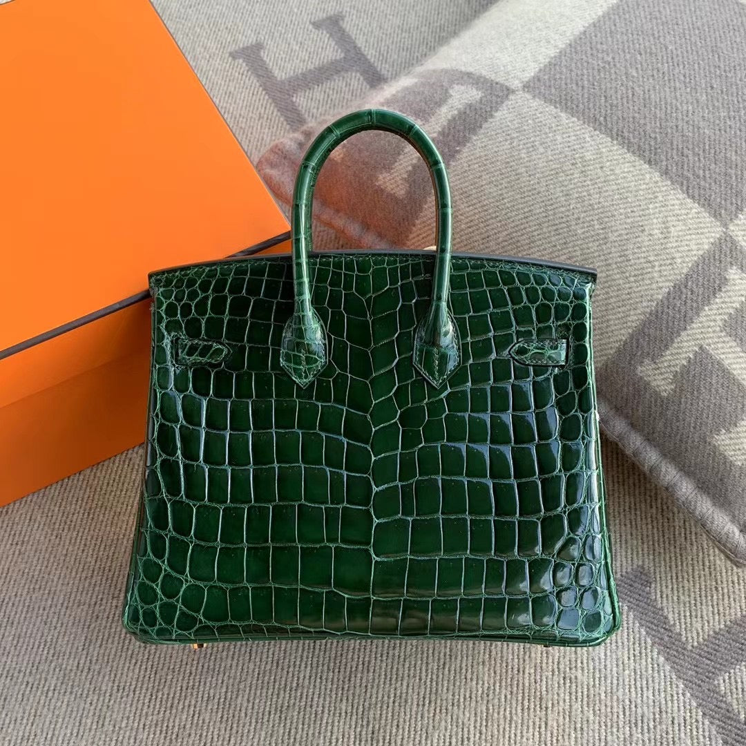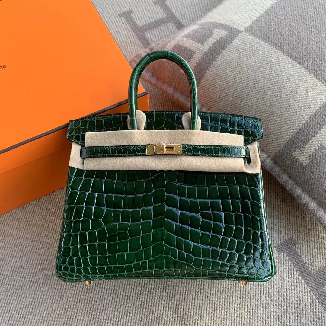 Hermes Birkin 25 glänzendes Nilkrokodil 🐊 Smaragdgold GHW