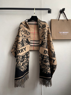 - An Italian-made scarf in jacquard-woven cashmere, reversing from our Equestrian Knight Design to our Burberry Check.