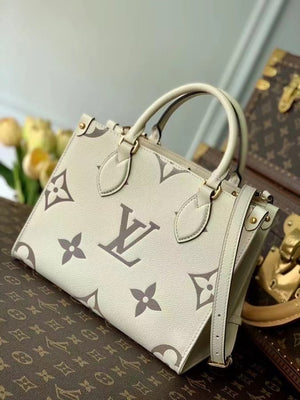 Onthego Trumpet Tote bag draws inspiration from the classic Sac Plat handbag of 1968, Monogram Empreinte leather with an oversized monogram pattern achieves a miniature version, which can accommodate iPad Mini and other everyday needs. Flexible handles and adjustable shoulder straps enrich back carrying options. 25 x 19 x 11.5 Cm (Length x Height x Width) Embossed grain leather Grain leather trim Microfiber inner lining Metal piece Zipper inside patch pocket Double inside pocket Rivet corners Shoulder strap: Removable, Adjustable Bag Strap Half Length: 48.0 cm Bag strap half length adjustable: 52.0 cm Handle: Double handle