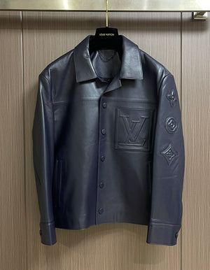 This waisted jacket is made of soft lambskin leather and features 3D embossed details, adding an elegant touch to the sporty look of the LV Cup collection. The LV monogram is featured on the chest patch pocket, the Monogram flower blooms on the left sleeve, and the V-shaped seams on the back cleverly echo the Gaston patch below the neckline.