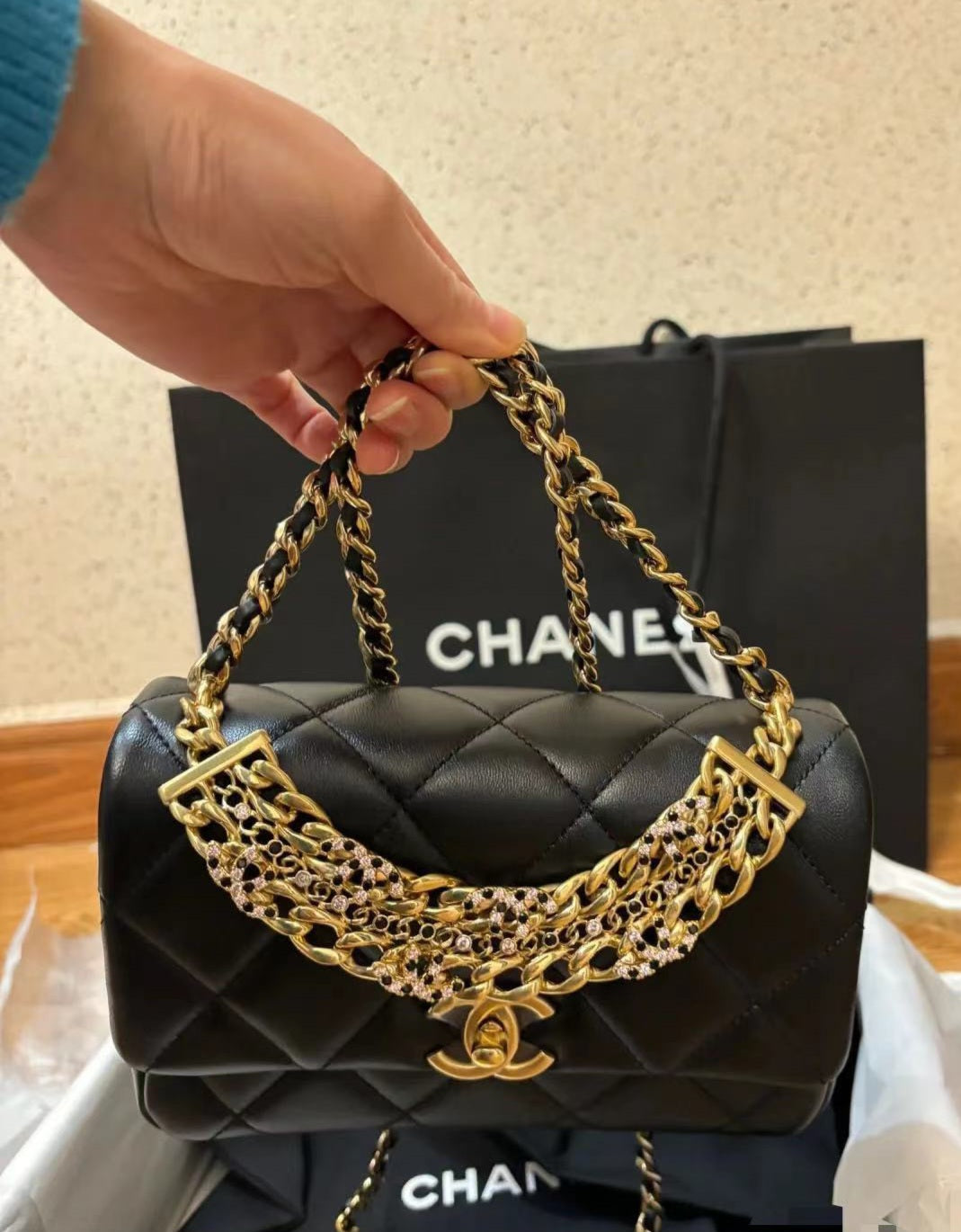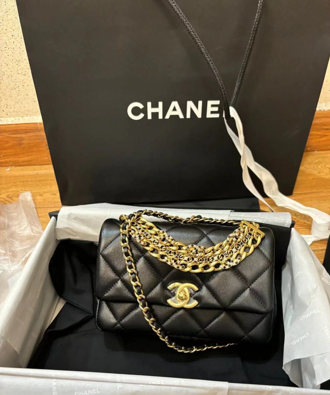 Chanel Lambskin Quilted Multiple Chain Flap Black